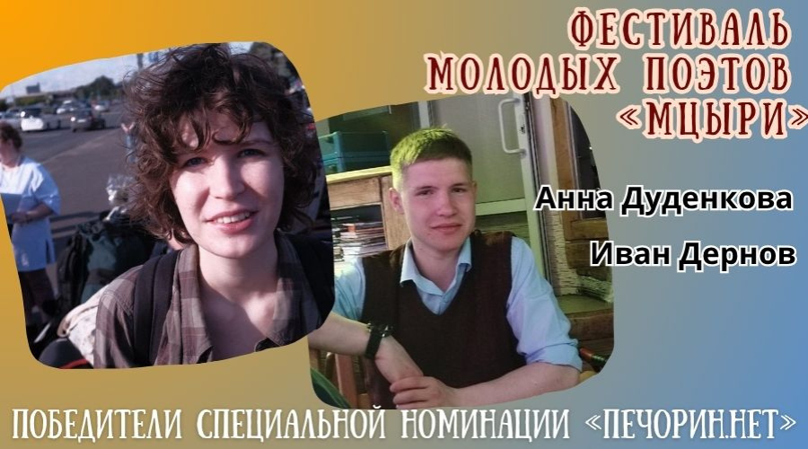 Начинаем публикацию стихотворений победителей спецноминации «Печорин.нет» Фестиваля молодых поэтов «МЦЫРИ». Первые, с чьим творчеством мы хотим познакомить наших читателей, — Анна Дуденкова и Иван Дернов.
