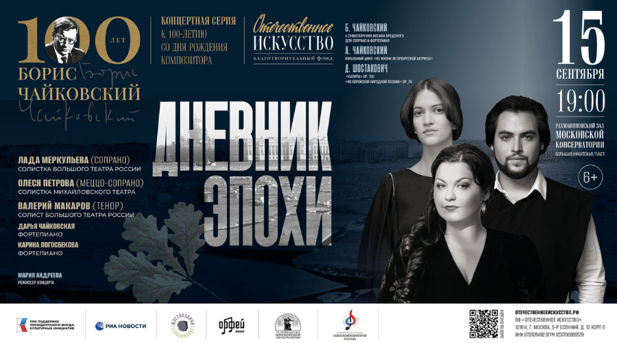 В концерте прозвучат вокальные циклы Б. Чайковского, Д. Шостаковича, А. Чайковского на стихи поэтов ХХ века. Вход по билетам.