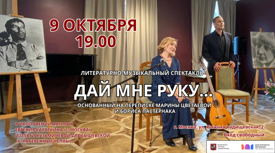 Спектакль построен на письмах и стихах Марины Цветаевой и Бориса Пастернака в исполнении Марины Цветаевой и Бориса Пастернака. Вход свободный.